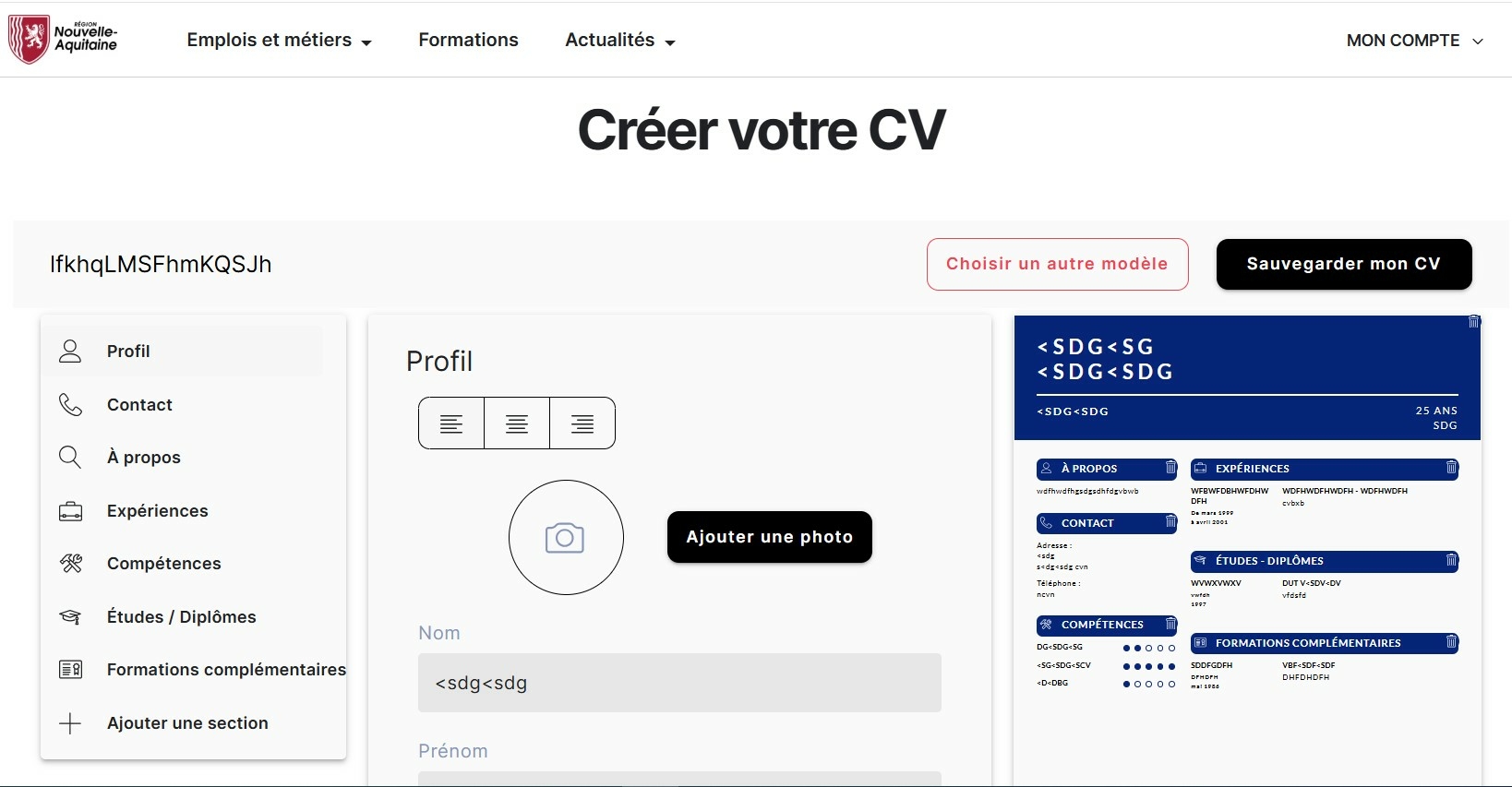 Visualiser votre CV en temps réel : Au fur et à mesure que vous remplissez les champs (expériences, compétences, formations), votre CV se construit sous vos yeux. Pas satisfait·e du rendu ? Changez de maquette en un clic : le module remet automatiquement en page toutes vos informations dans le nouveau modèle, sans perte de données.